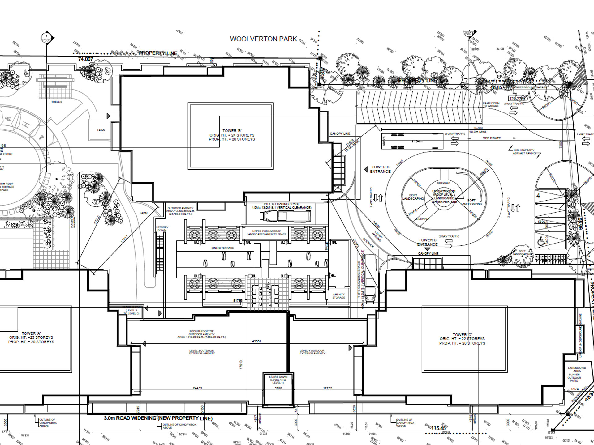 UrbanSolutions secured Zoning By-law Amendment approval at the Ontario Land Tribunal on the subject lands for a high-density mixed-use development consisting of three 20-storey residential towers atop a 6-level podium containing 1,587 m2 of commercial space and rooftop amenity/outdoor space. The development proposal is to be accommodated by 708 vehicular parking spaces contained across 6 interior levels of the building’s podium.