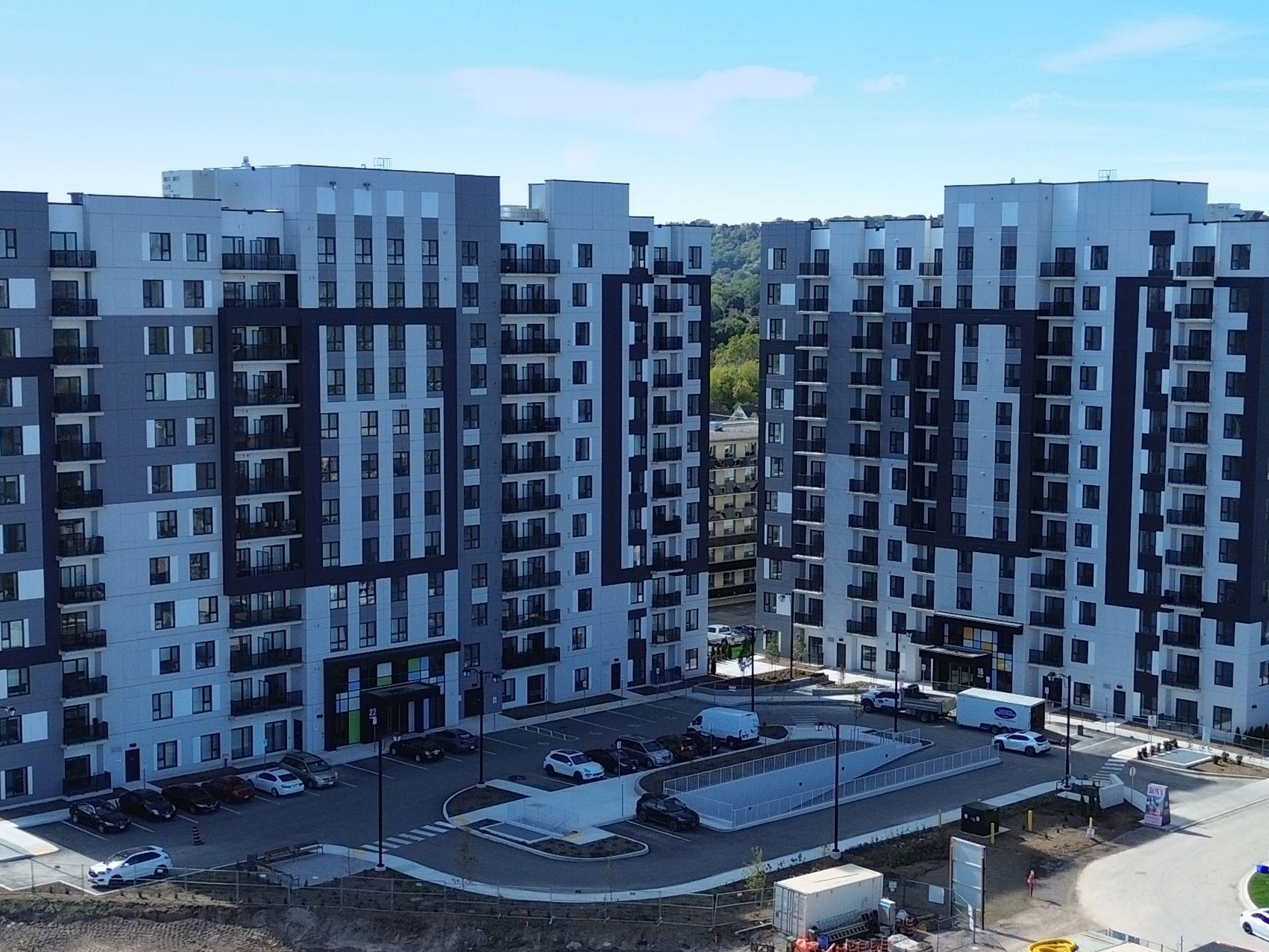 Roxy Apartments is a key phase of the emerging Roxborough Park Subdivision, delivering a total of 352 modern residential units across two buildings—152 units at 16 Roxanne Drive and 200 units at 22 Roxanne Drive. Designed with comfort and sustainability in mind, Roxy Apartments offers in-suite laundry, dishwasher, keyless entry, secure underground parking, and a fully equipped fitness studio. The building is powered by geothermal energy, supporting long-term efficiency and environmental responsibility. UrbanSolutions secured final Site Plan Approval for this phase, coordinating with City staff, addressing technical comments, and navigating multiple review cycles to secure final approval. Our work involved liaising with the project team to refine site design, servicing, building layout, and sustainability elements to meet municipal requirements and advance this component of the broader subdivision.